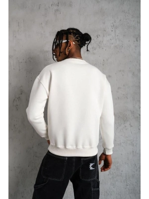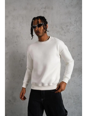 Erkek Düz Bisiklet Yaka Sweat - Beyaz