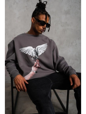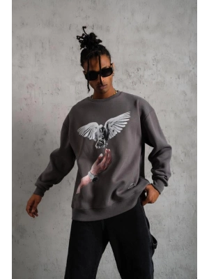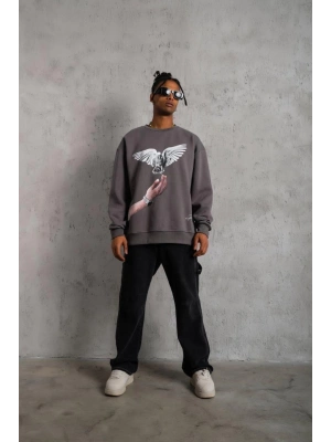 Erkek Güvercin Baskılı Sweatshirt - Gri