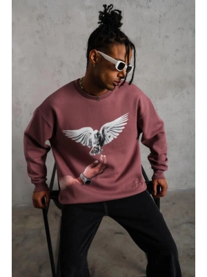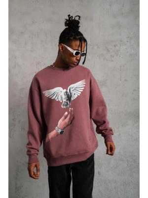 Erkek Güvercin Baskılı Sweatshirt - Gül Kurusu