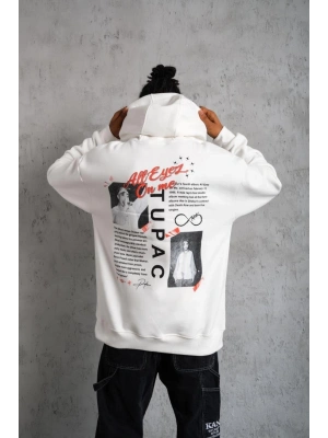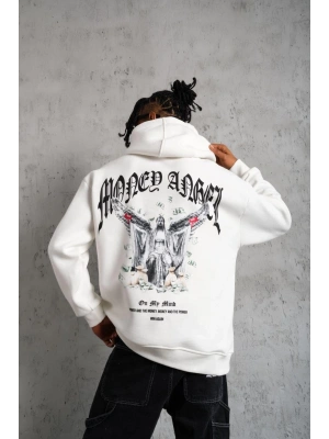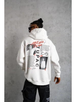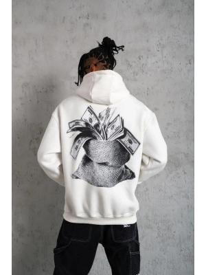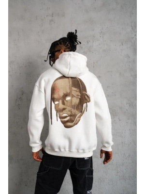 Erkek Kapşonlu Sweatshirt Oversize Üç İplik Şardonlu Other Lives Ön Arka Baskılı - Beyaz