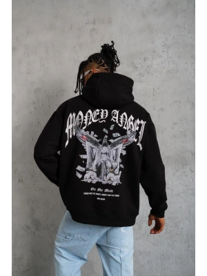 Erkek Baskılı Üç İplik Kapüşonlu Oversize Sweatshirt - Siyah