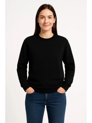 Kadın Üç İplik Düz Bisiklet Yaka SweatShirt - Siyah