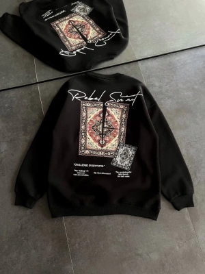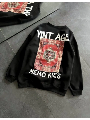 Kışlık Bisiklet Yaka Ön Ve Arka Baskılı SweatShirt - Siyah