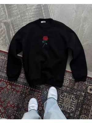 Bisiklet Yaka Üç İplik Baskılı Oversize SweatShirt - Siyah