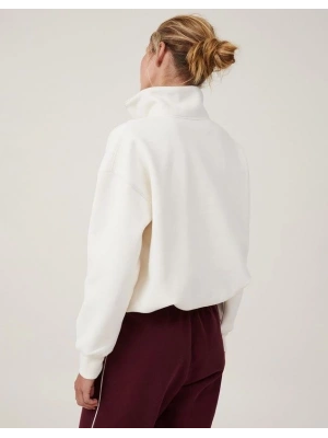 Kadın Uzun Kol Yarım Farmuarlı Yakalı Basic SweatShirt - Beyaz