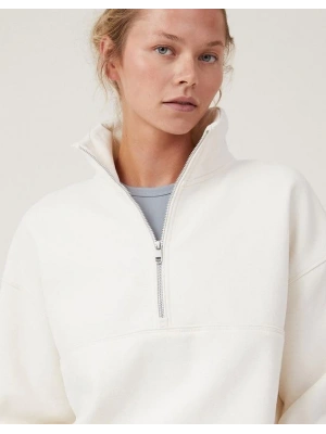 Oversize Yarım Farmuarlı Yakalı Basic SweatShirt - Beyaz