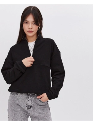 kadın Uzun Kol Yarım Farmuarlı Yakalı Basic SweatShirt - Siyah