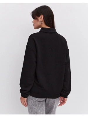Oversize Yarım Farmuarlı Yakalı Basic SweatShirt - Siyah