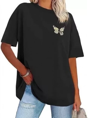 Kadın kelebek Baskılı Oversize T-Shirt - Beyaz