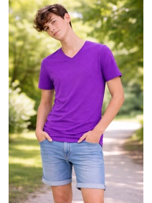 Genç Erkek Çocuk V Yaka Tişört Model - Mor