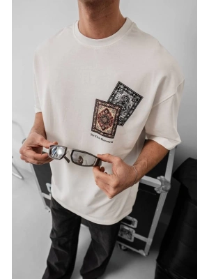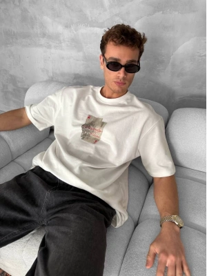 Erkek Baskılı Oversize - Beyaz