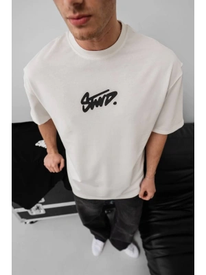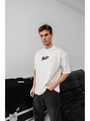 ERKEK Ön ve Arka Baskılı Oversize Bisiklet Yaka - Beyaz