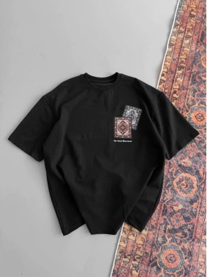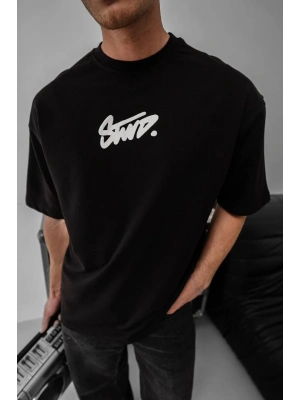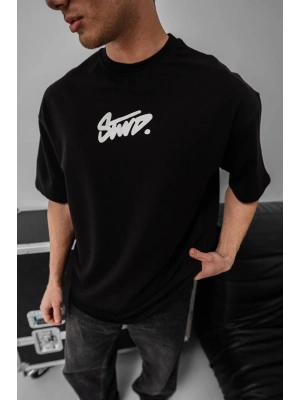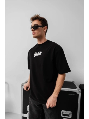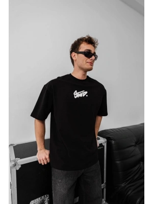 Erkek Baskılı Oversize T-shirt - Siyah