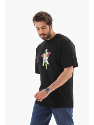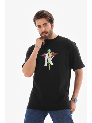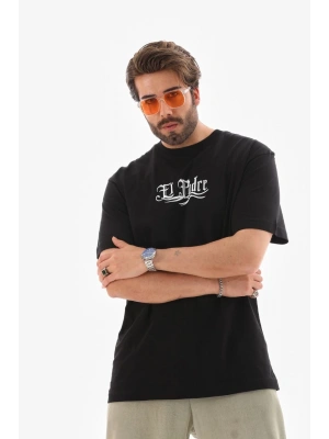 ERKEK Bisiklet Yaka Baskılı Oversize T-Shirt - Siyah