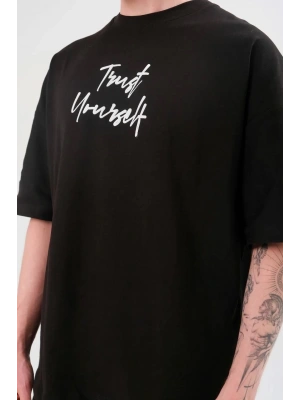 ERKEK Bisiklet Yaka Baskılı Oversize T-Shirt - Siyah