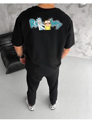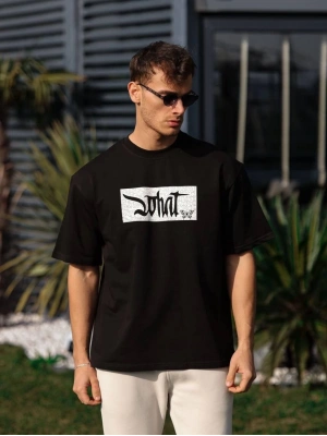 ERKEK Bisiklet Yaka ön ve arka Baskılı Oversize T-Shirt - Siyah