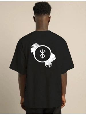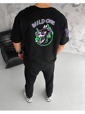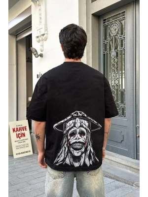 ERKEK Bisiklet Yaka ön ve sırt Baskılı Oversize T-Shirt - Siyah