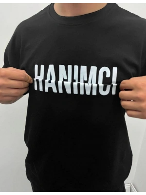 ERKEK Bisiklet Yaka Katlanan Hanımcı Baskılı T-Shirt - Siyah