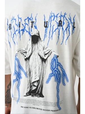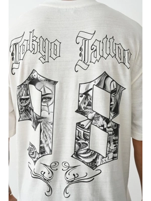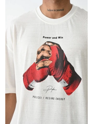 Erkek Baskılı Oversize T-Shirt - Beyaz
