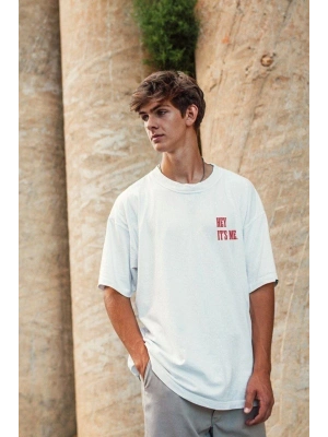 ERKEK Baskılı Oversize T-Shirt - Beyaz