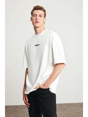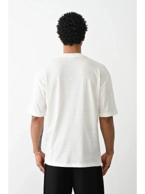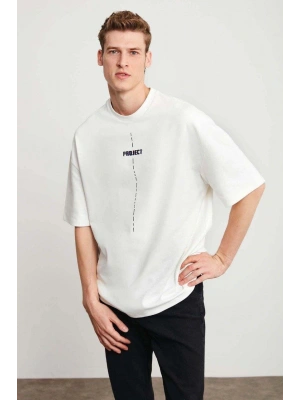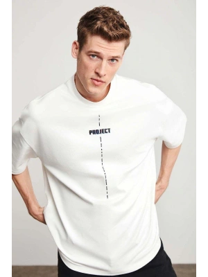 ERKEK Bisiklet Yaka Baskılı Oversize T-Shirt - Beyaz