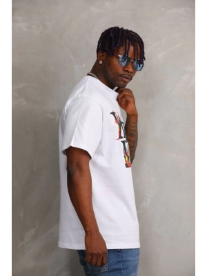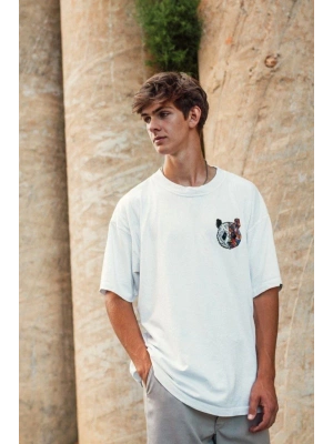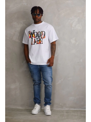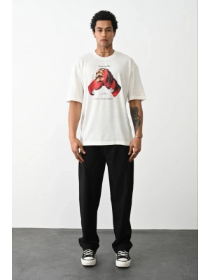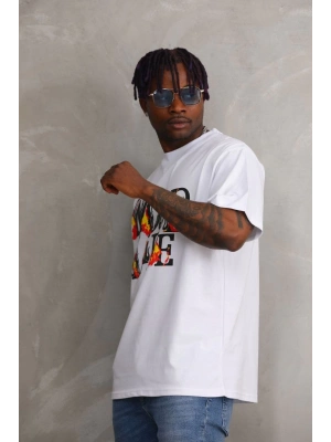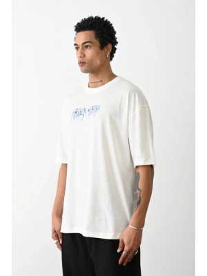 erkek Baskılı Oversize T-Shirt - Beyaz