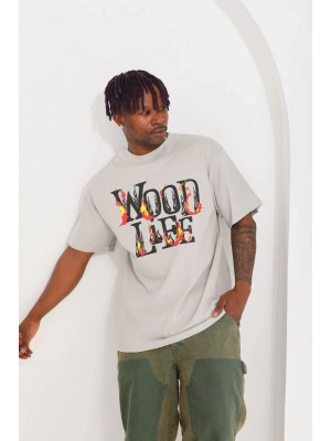 ERKEK Baskılı Oversize T-Shirt - Gri
