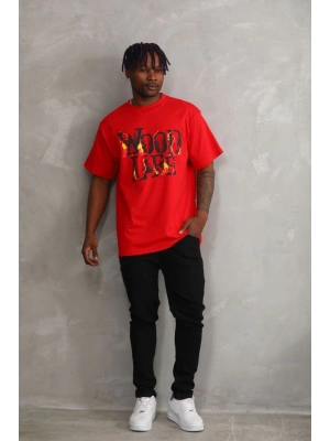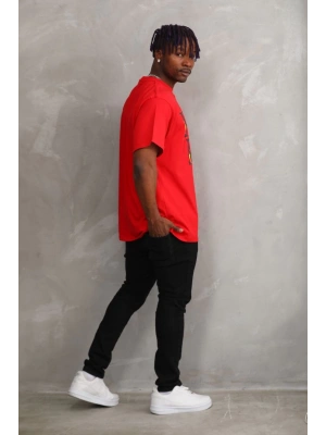 ERKEK Baskılı Oversize T-Shirt - Kırmızı