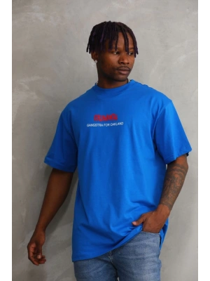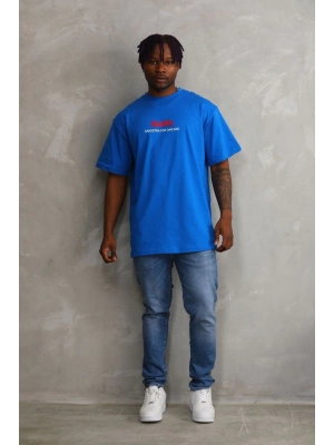 ERKEK Baskılı Oversize T-Shirt - Mavi