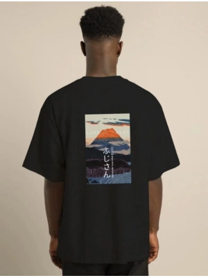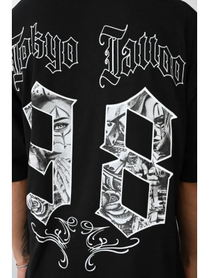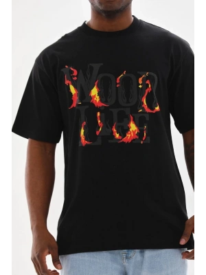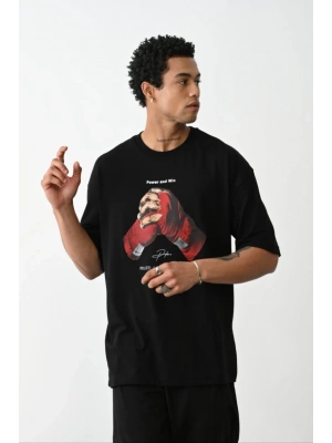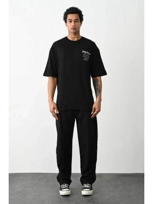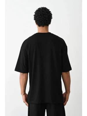 erkek Baskılı Oversize T-Shirt - Siyah