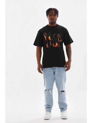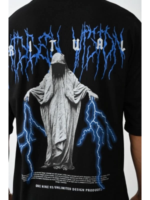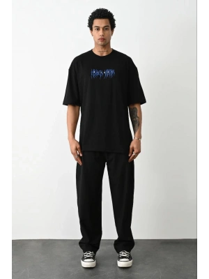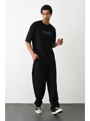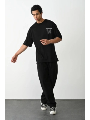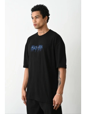 ERKEK Baskılı Oversize T-Shirt - Siyah