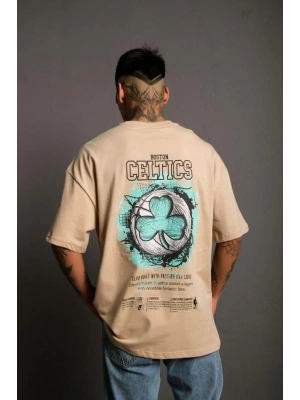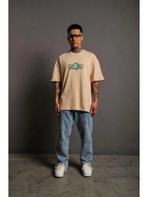 Erkek 24/1 Düz A Kalite Oversize T-shirt - Bej