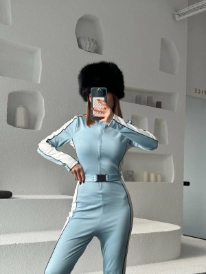 Kemer Detaylı Fermuarlı Tulum - Bebe Mavisi