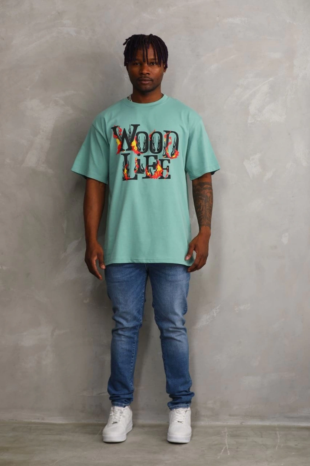 • ERKEK Baskılı Oversize T-Shirt - Mint Yeşili