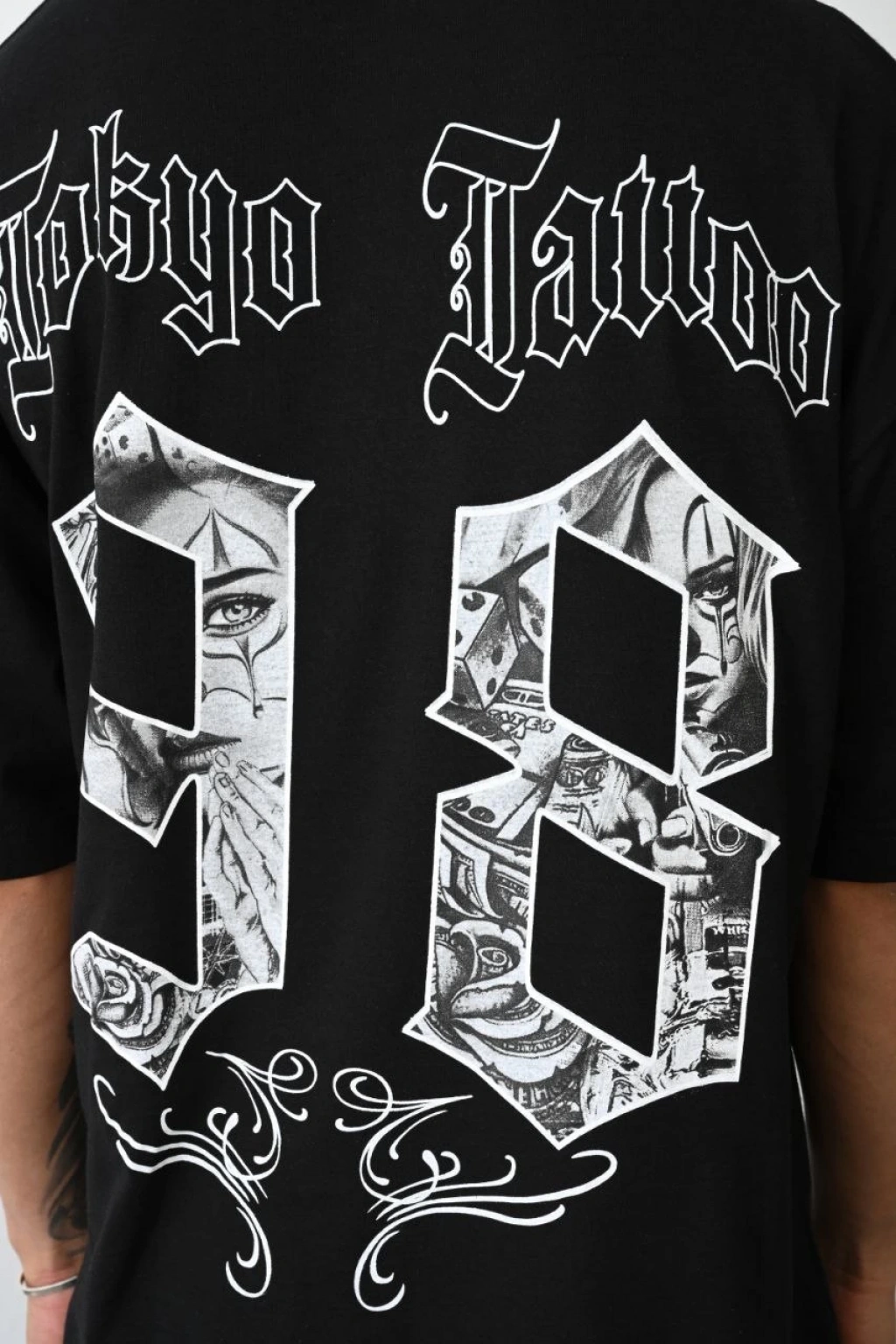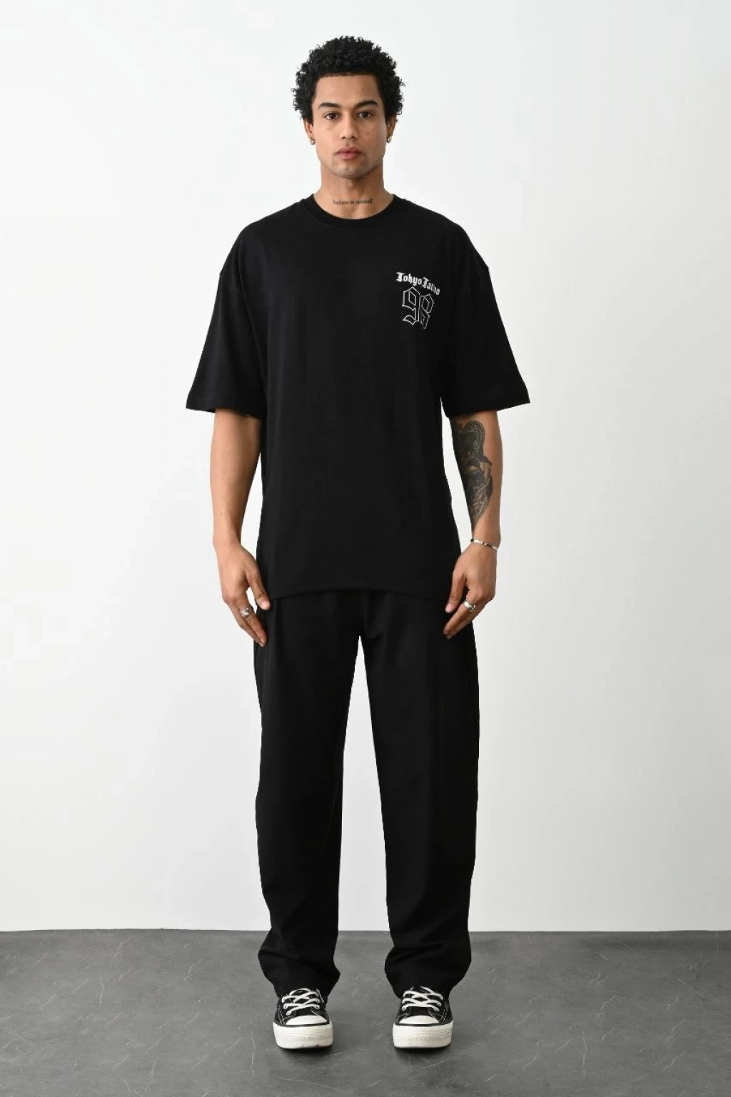 • erkek Baskılı Oversize T-Shirt - Siyah