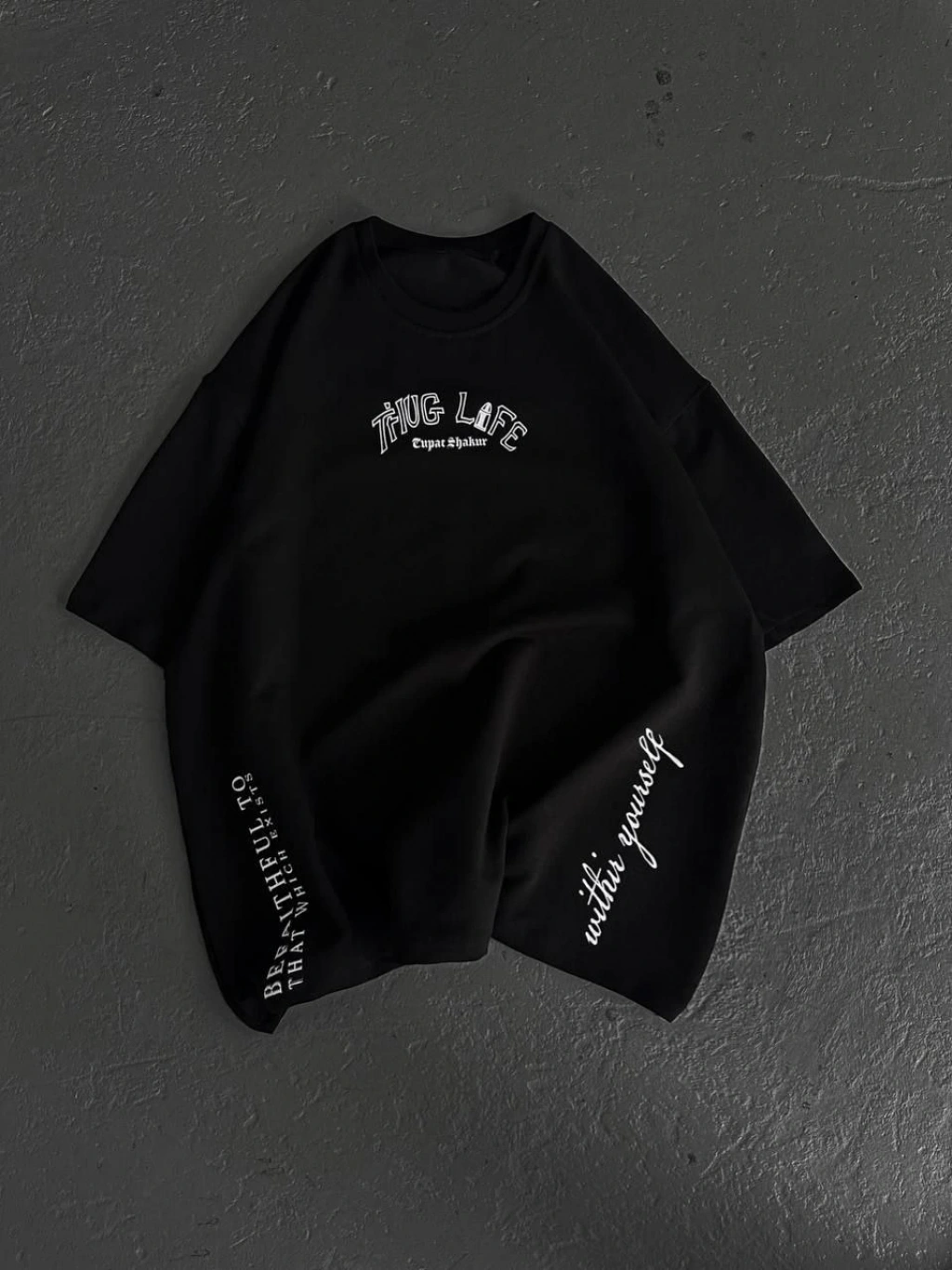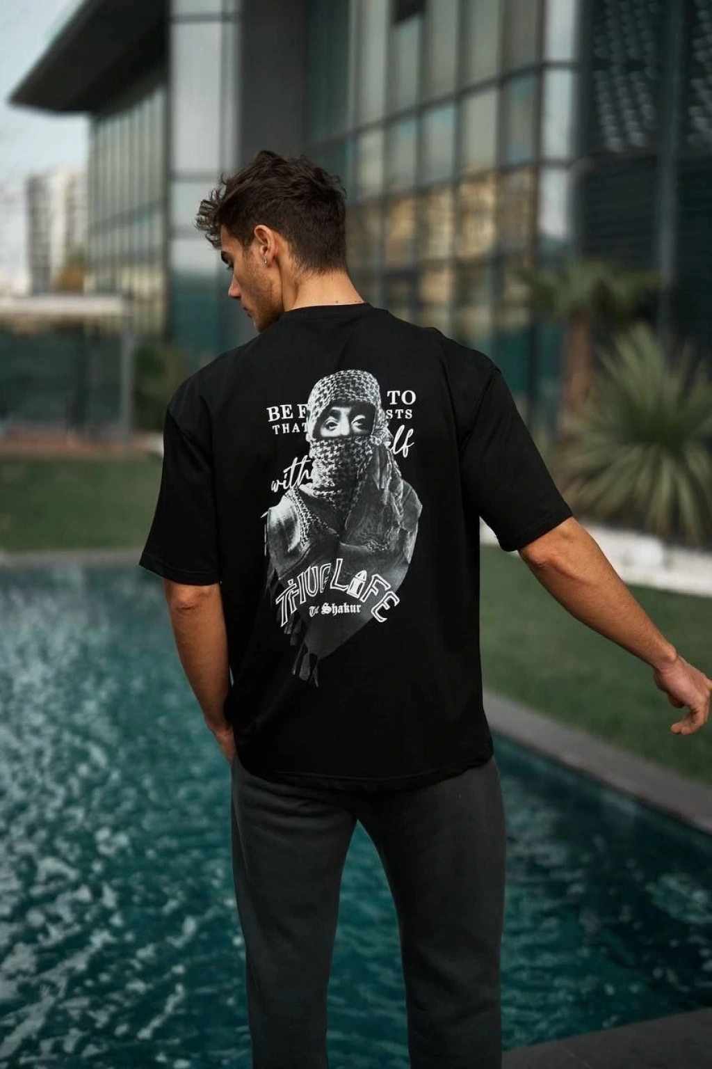 • ERKEK Baskılı Oversize T-Shirt - Siyah