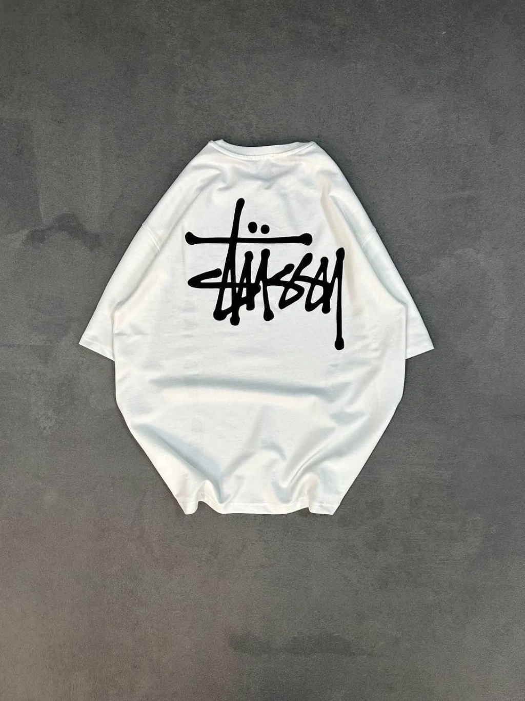 kadın Bisiklet Yaka Baskılı Oversize T-Shirt - Beyaz