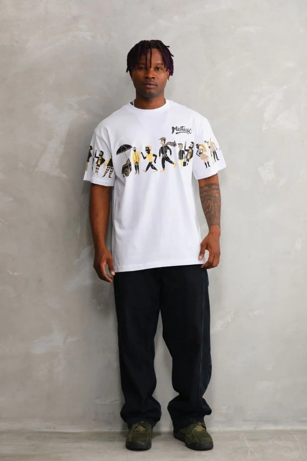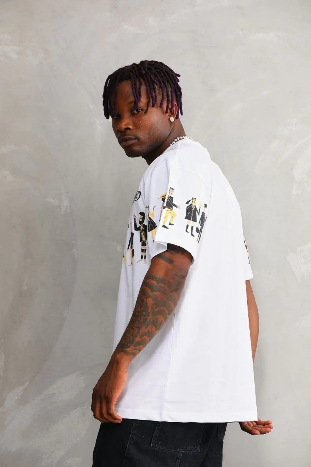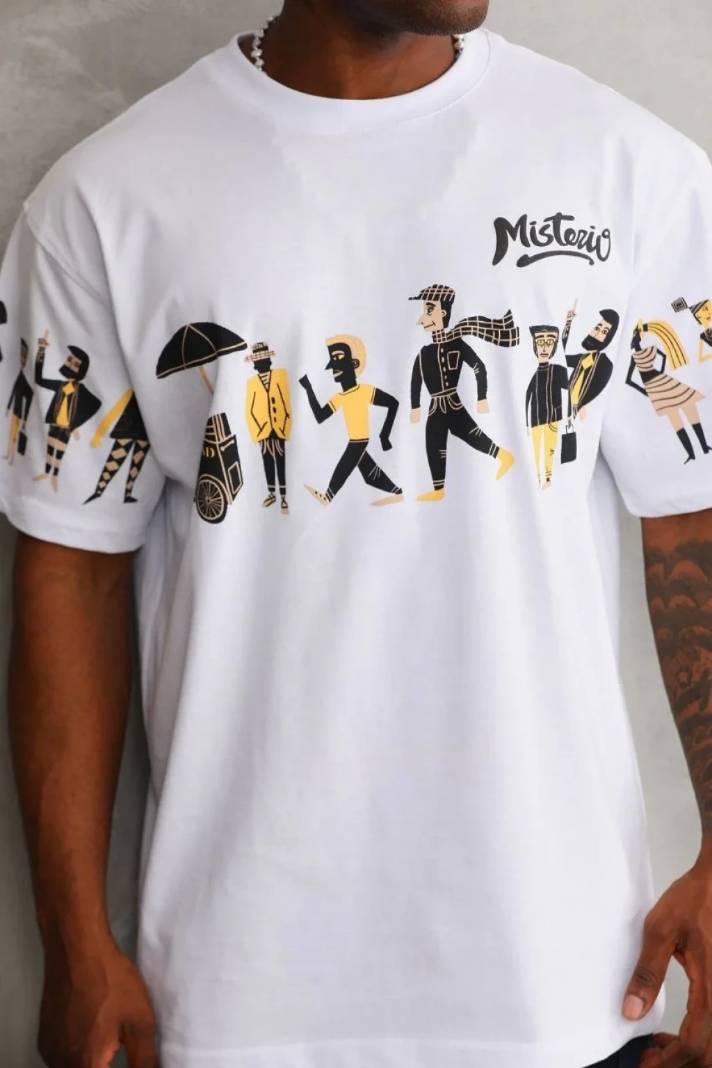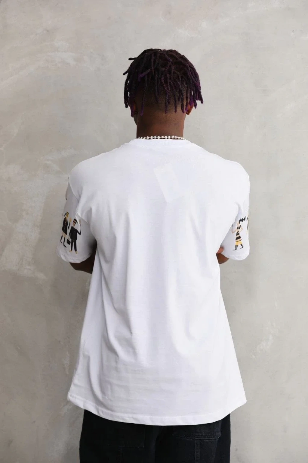 Erkek Bisiklet Yaka Baskılı Oversize T-Shirt - Beyaz