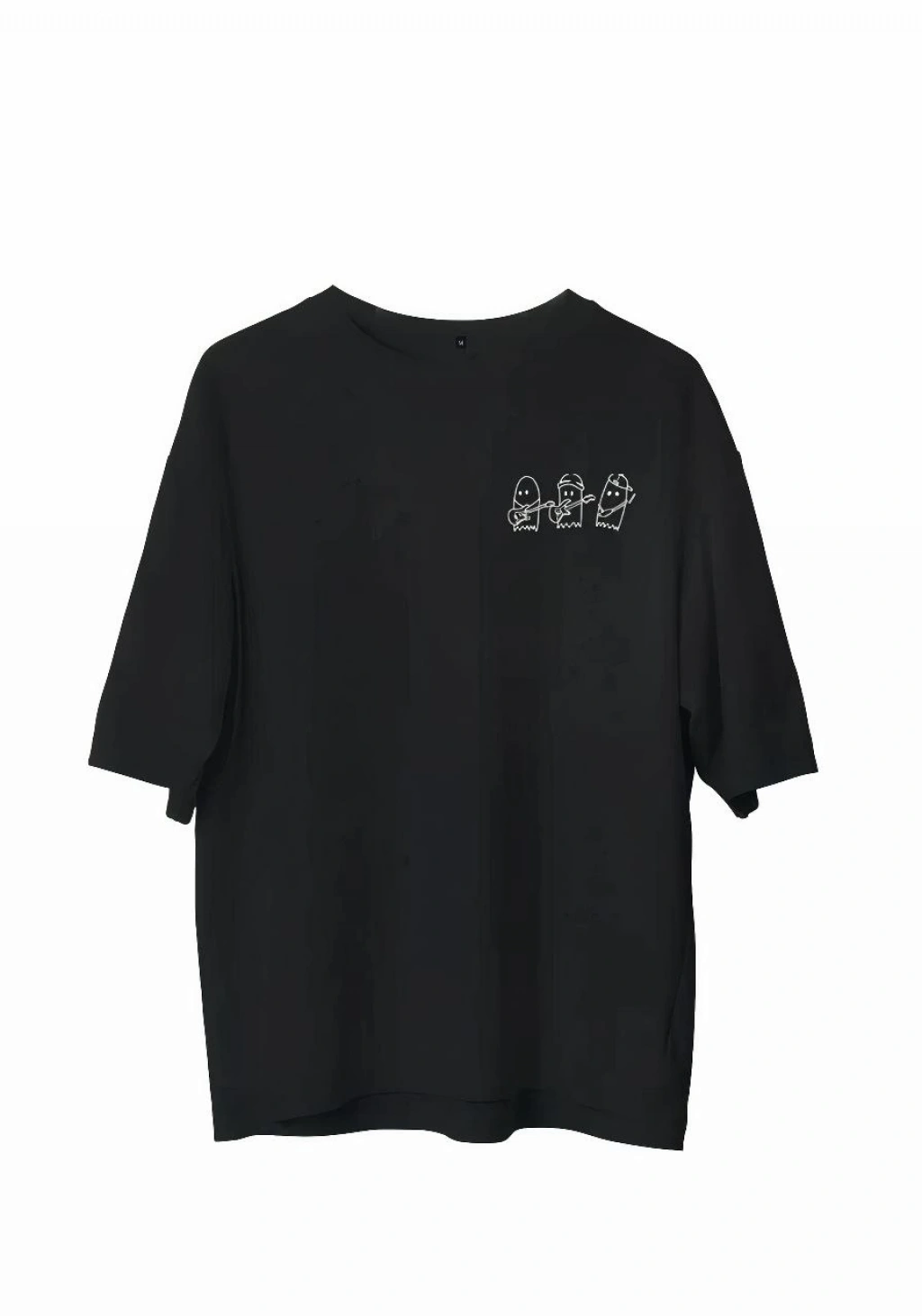 Erkek Bisiklet Yaka Baskılı Oversize T-Shirt - Siyah
