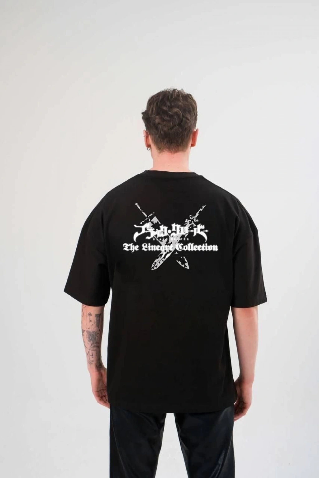 • ERKEK Bisiklet Yaka Baskılı Oversize T-Shirt - Siyah