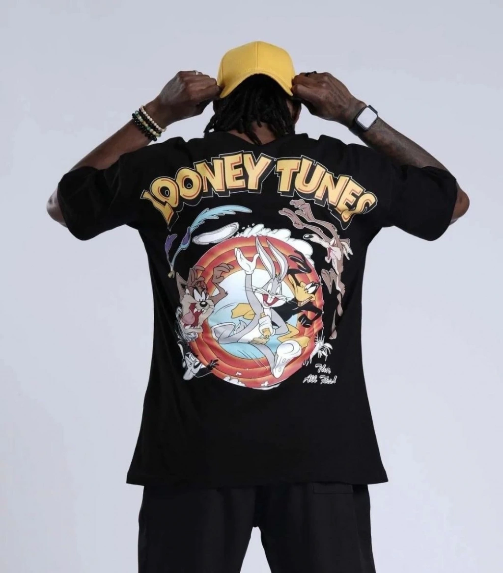 Bisiklet Yaka Baskılı Oversize T-Shirt - Siyah