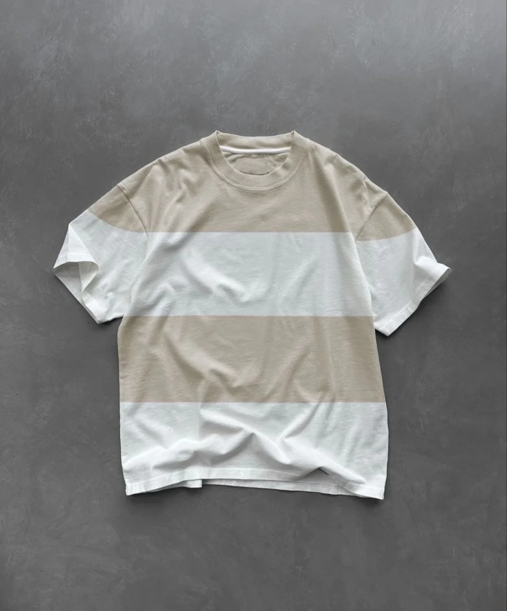 Unisex Bisiklet Yaka Parçalı T-Shirt - Bej