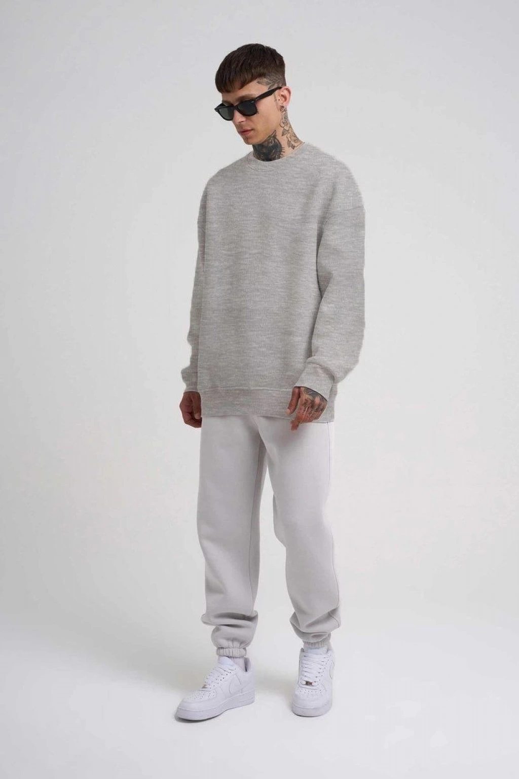 ERKEK Biskilet Yaka Üç İplik SweatShirt - Gri