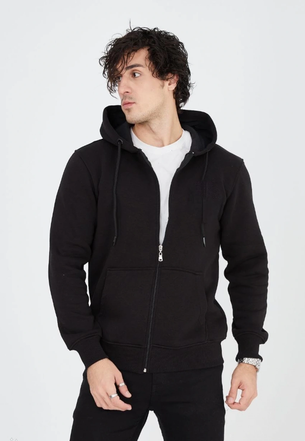 ERKEK Tam Fermuarlı Kapşonlu  SweatShirt - Siyah