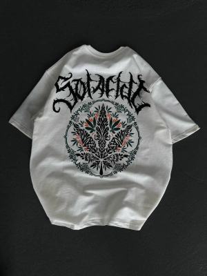 kadın Bisiklet Yaka Baskılı Oversize T-Shirt - Beyaz