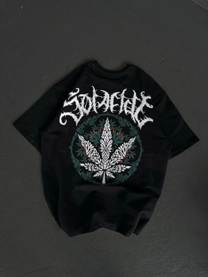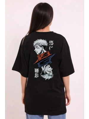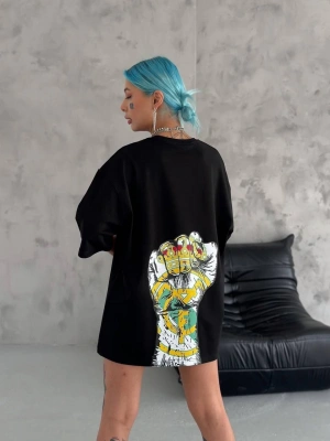 Kadın Bisiklet Yaka Yıldırım Baskılı Oversize T-Shirt - Siyah