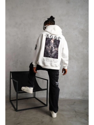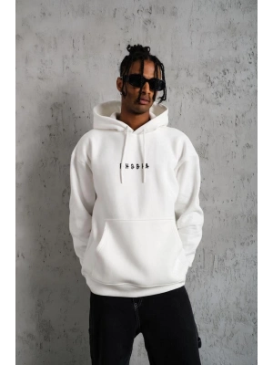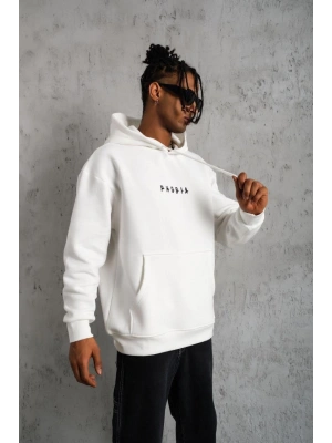 Erkek Baskılı Kapüşonlu Sweat - Beyaz