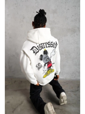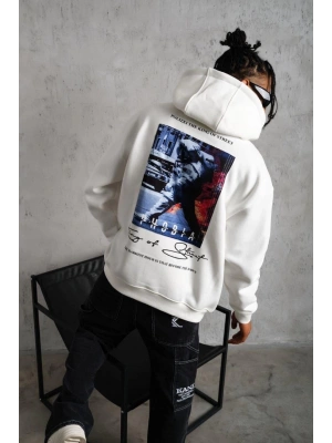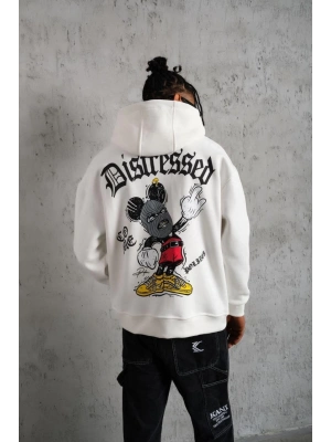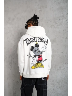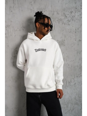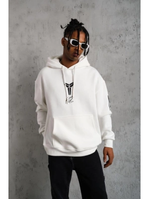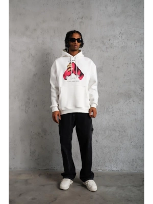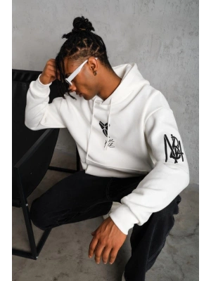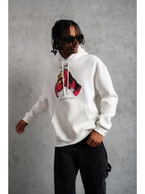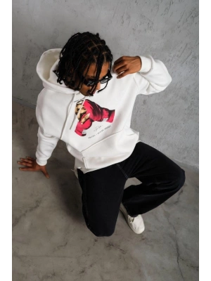 Erkek Eldiven Baskılı Kapüşonlu Sweat - Beyaz