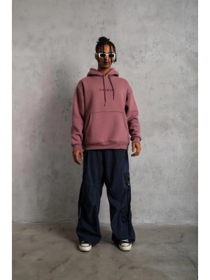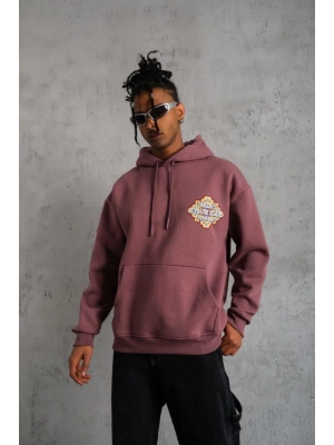 Erkek Kilim Desen Kapüşonlu Sweat - Gül Kurusu