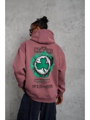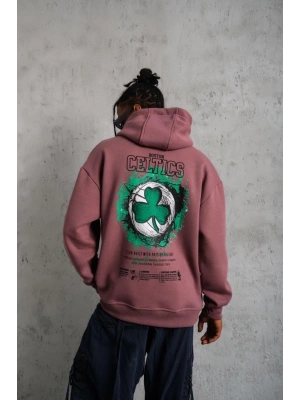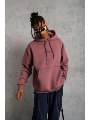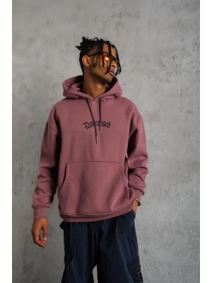 Erkek Üç İplik Baskılı Kapüşonlu Sweat - Gül Kurusu